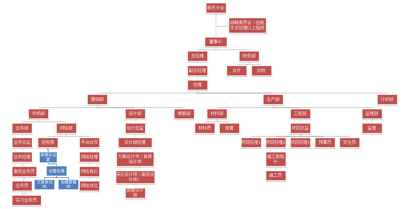 公司從創(chuàng)立到現(xiàn)在,每年的產(chǎn)值也在不斷地呈階梯式上升,從不到百萬(wàn)到幾千萬(wàn)的年產(chǎn)值,獲得行業(yè)內(nèi)部的好評(píng)、客戶的肯定和材料商家美贊,這些都是公司每一位員工不懈努力的結(jié)果。公司的使命是一站式解決裝修難題,成就客戶,成就員工的心永遠(yuǎn)不變。我們的愿景是成為四川客戶信賴的公裝品牌企業(yè),創(chuàng)裝修行業(yè)新形象。我們始終以客戶為中心,提供優(yōu)質(zhì)的設(shè)計(jì)施工與服務(wù),客戶的滿意是我們的不懈追求。公司也將跟隨時(shí)代,跟隨社會(huì)變革,提高管理模式,提高施工效率和工藝,做好售后服務(wù)體系,以自身的實(shí)力服務(wù)客戶、回饋客戶、回饋員工、回饋社會(huì)。在未來的道路上,我們不會(huì)為了業(yè)績(jī)而忘記使命,希望公司在未來道路上能蒸蒸日上,實(shí)現(xiàn)客戶、員工、公司共贏。