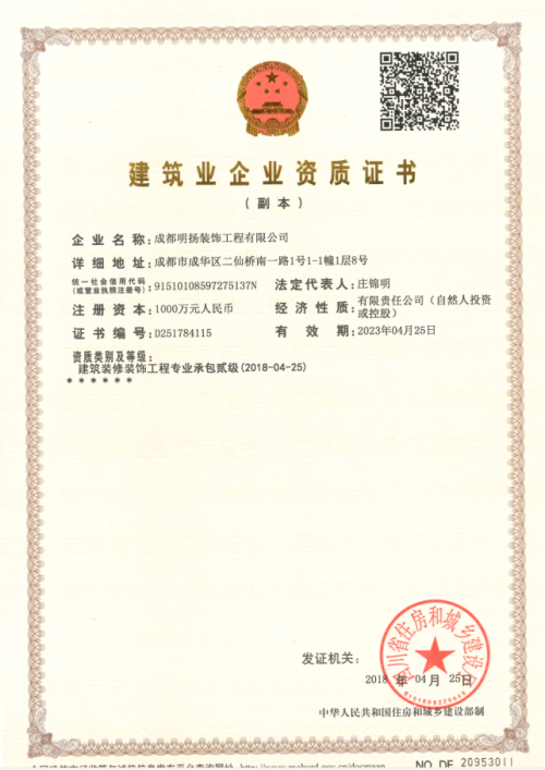 成都明揚(yáng)裝飾工程有限公司成立于2012年05月22日,公司注冊(cè)資本1000萬(wàn)元,旗下品牌包括“明揚(yáng)裝飾”、“瑞明揚(yáng)裝飾”,主營(yíng)業(yè)務(wù)涵蓋餐飲空間、商鋪、酒店、辦公室、寫字樓、教育培訓(xùn)、奶茶飲品、美容美發(fā)及廠房等裝飾裝修相關(guān)的所有業(yè)務(wù)。公司持二級(jí)裝飾裝修工程資質(zhì),成立至今裝修落地大中型工裝100多家,中小型更甚,涉及餐飲、酒店、空間、教育、裝修等,其中不乏業(yè)內(nèi)前列的優(yōu)秀作品。公司人員配置充足穩(wěn)定,集設(shè)計(jì)施工售后一體,含設(shè)計(jì)師,項(xiàng)目經(jīng)理、施工員、監(jiān)理、材料員、資料員、財(cái)務(wù)、人事、采購(gòu)等,施工隊(duì)伍擁有多套固定班組,能同時(shí)多家工地進(jìn)行設(shè)計(jì)和施工,擁有一套多年成熟嚴(yán)格的施工工藝標(biāo)準(zhǔn),通過項(xiàng)目現(xiàn)場(chǎng)施工總結(jié)和對(duì)比,能夠在不同的施工環(huán)境下使作品圓滿落地。