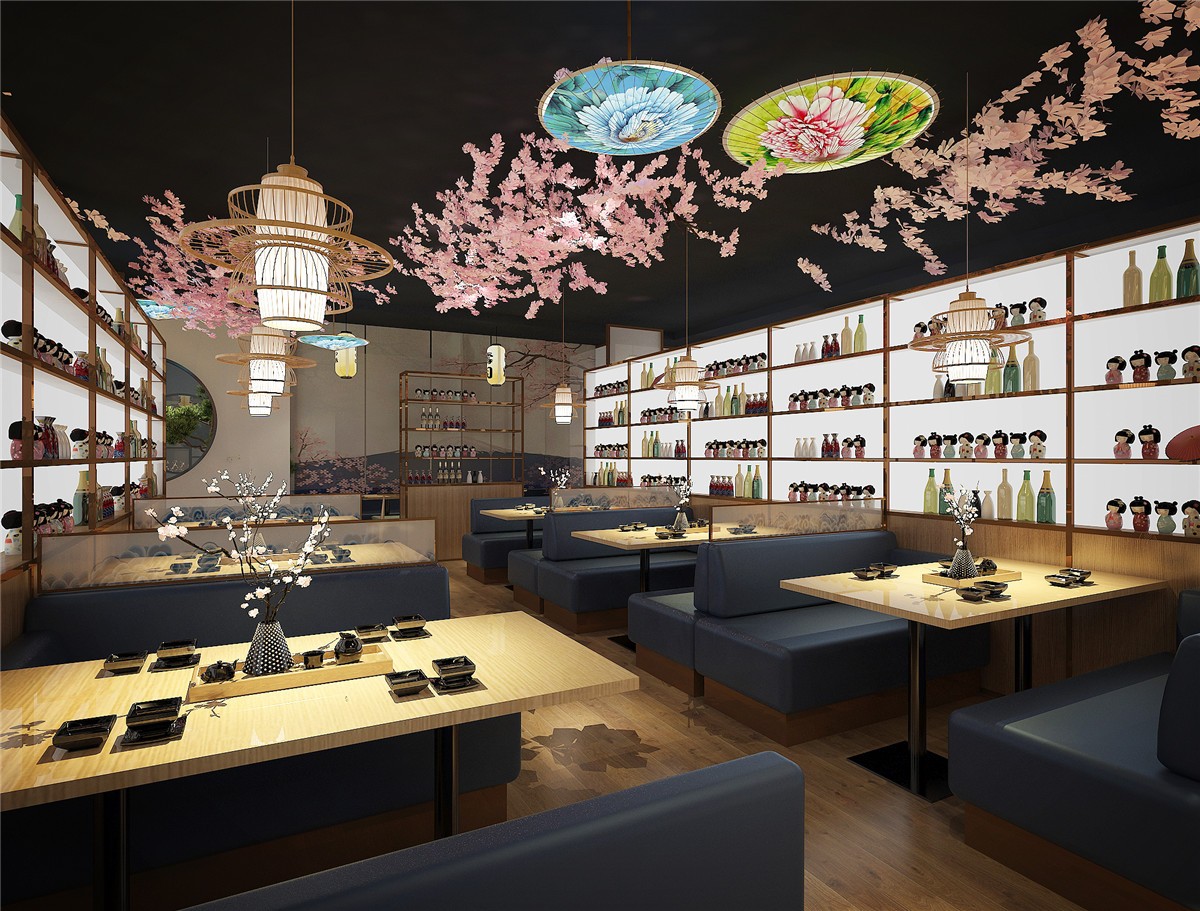 案例介紹:日本料理店,中式與日本元素相結(jié)合的設(shè)計風(fēng)格,項目從設(shè)計到施工到落地歷時75天。色調(diào)以原木色為主,輔色結(jié)合日本本土特色元素,項目在不失日本文化的同時兼容中國特色。